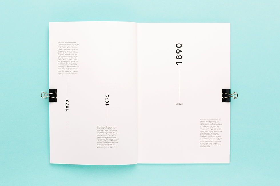 für den Gegenstand Kaugummi. Passend zum augewählten Gegenstand sollte die Geschichte des Kaugummi visuell in Form