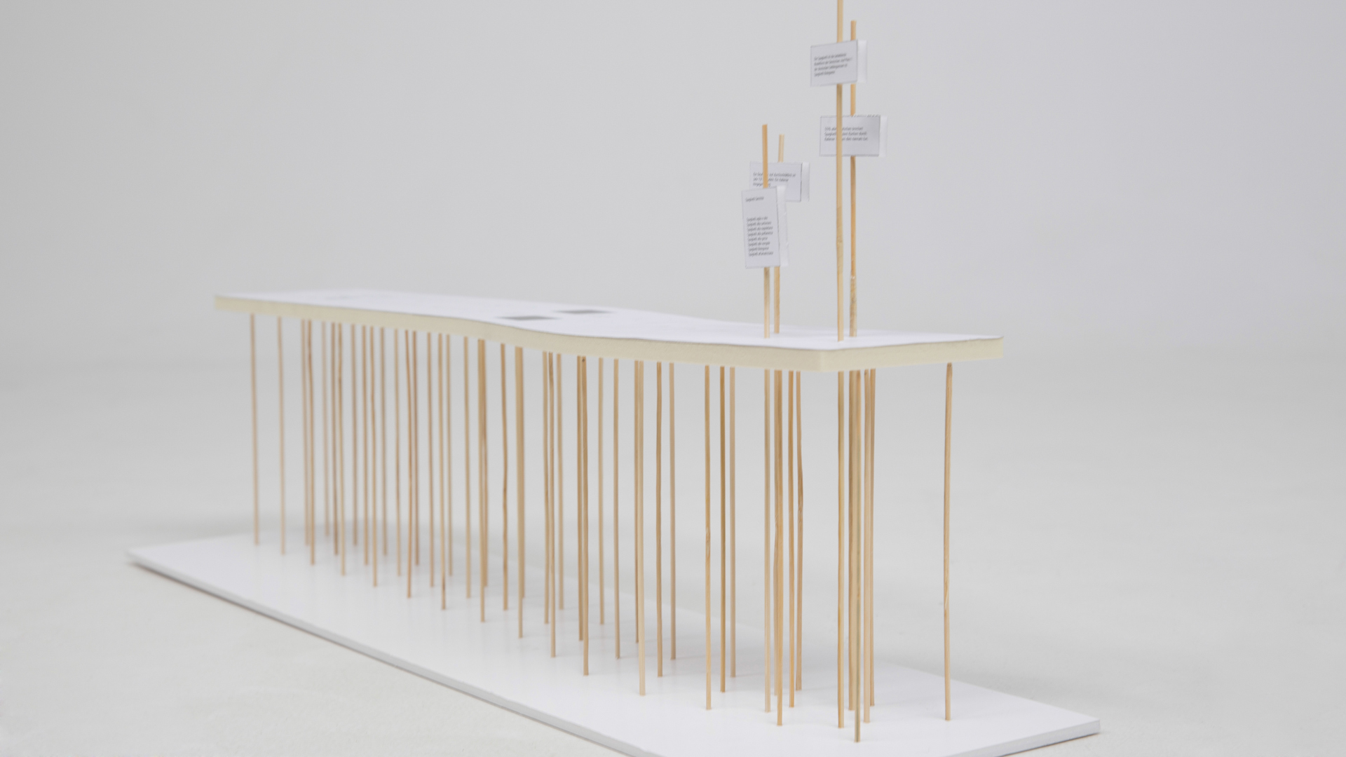 auf einer Fläche von zwei Quadratmetern gestaltet werden. Unser Konzept war ein langer Tisch, der in zwei